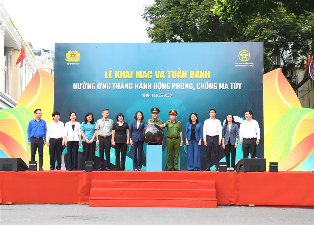 | Các đại biểu thực hiện nghi thức phát động chương trình " Chung một quyết tâm - Vì cộng đồng không ma túy" vào sáng 29/6/2024 tại Hà Nội. |