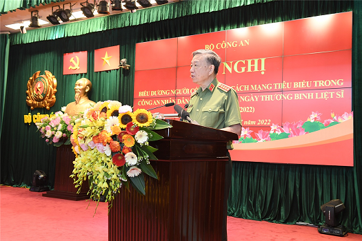 Tại Hội nghị biểu dương người có công với cách mạng tiêu biểu trong Công an nhân dân (CAND) năm 2022 nhân kỷ niệm 75 năm Ngày Thương binh – Liệt sĩ (27/7/1947 - 27/7/2022) do Bộ Công an tổ chức, Bộ trưởng Tô Lâm đề nghị cấp ủy, thủ trưởng Công an các cấp nghiêm túc tiếp thu những ý kiến chỉ đạo sâu sắc của đồng chí Chủ tịch nước tại Hội nghị; thường xuyên chỉ đạo, có kế hoạch cụ thể nâng cao hiệu quả các hoạt động tri ân, đền ơn đáp nghĩa đối với thương binh, bệnh binh, thân nhân liệt sĩ, người có công với cách mạng. Đẩy mạnh tuyên truyền chủ trương, chính sách của Đảng, Nhà nước và các hoạt động chăm lo người có công với cách mạng trong CAND. Thông tin kịp thời về những tấm gương dũng cảm, hi sinh trong đấu tranh phòng, chống tội phạm, những gương điển hình tiên tiến của thương binh, bệnh binh, thân nhân liệt sĩ trong học tập, công tác, chiến đấu. Đồng thời, nâng cao chất lượng đội ngũ làm công tác chính sách trong CAND; tăng cường hướng dẫn, kiểm tra việc thực hiện chế độ, chính sách đối với người có công và chính sách hậu phương CAND để công tác này mang lại ý nghĩa thiết thực và đạt kết quả cao nhất. xem thêm