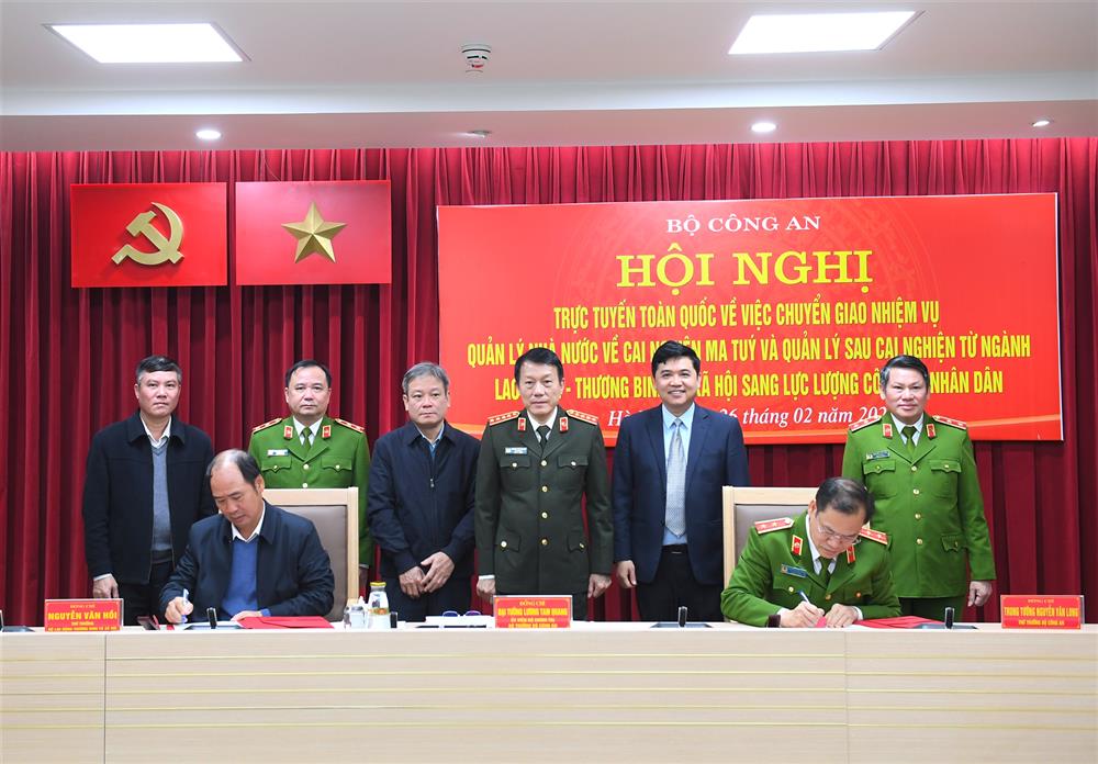 Ngày 26/02/2025, tại Hà Nội, Bộ Công an tổ chức Hội nghị trực tuyến toàn quốc về việc chuyển giao nhiệm vụ quản lý nhà nước về cai nghiện ma tuý và quản lý sau cai nghiện từ ngành Lao động - Thương binh và Xã hội sang lực lượng Công an nhân dân. Đại tướng Lương Tam Quang, Ủy viên Bộ Chính trị, Bộ trưởng Bộ Công an chủ trì Hội nghị.