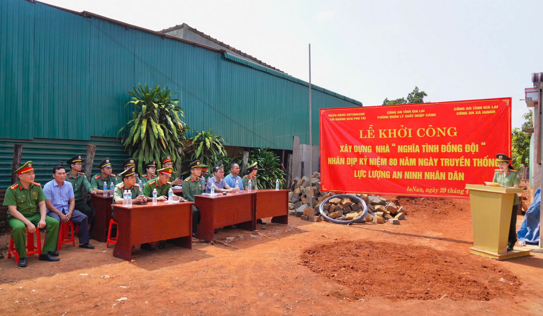 Hướng tới kỷ niệm 80 năm Ngày truyền thống lực lượng An ninh nhân dân (12/7/1946 – 12/7/2026), sáng 29/4/2026, Phòng Quản lý xuất nhập cảnh Công an tỉnh Gia Lai phối hợp với Công an xã Ia Nan và Ngân hàng VietinBank Chi nhánh Phú Tài tổ chức Lễ khởi công xây dựng nhà “Nghĩa tình đồng đội” tặng gia đình lực lượng tham gia bảo vệ an ninh, trật tự ở cơ sở có hoàn cảnh khó khăn trên địa bàn.