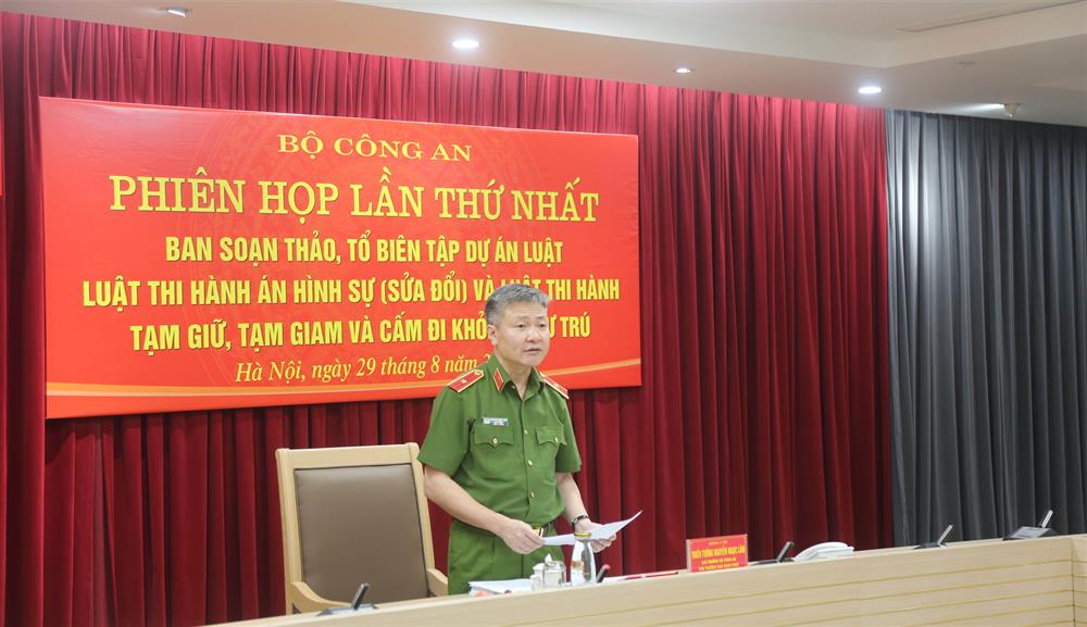 Chiều ngày 29/8/2024, tại Hà Nội, Bộ Công an tổ chức phiên họp lần thứ nhất Ban soạn thảo, Tổ biên tập dự án Luật Thi hành án hình sự (sửa đổi) và dự án Luật Thi hành tạm giữ, tạm giam và cấm đi khỏi nơi cư trú. Thiếu tướng Nguyễn Ngọc Lâm, Thứ trưởng Bộ Công an, Phó Trưởng ban soạn thảo chủ trì phiên họp.
