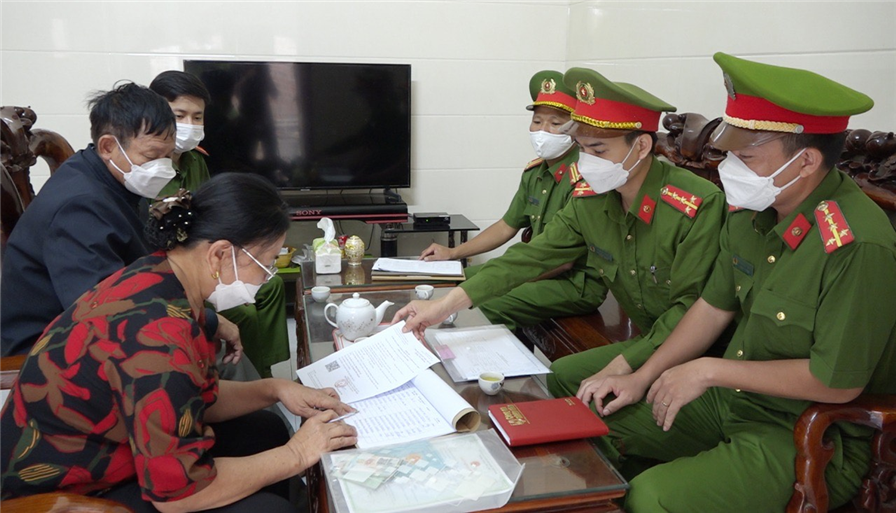 Công an phường Đồng Sơn, thành phố Đồng Hới tiến hành rà soát, kiểm tra, đối chiếu dữ liệu dân cư tại gia đình bà Nguyễn Thị Thu