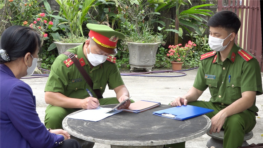 Lực lượng công an cơ sở “đi từng ngõ, gõ từng nhà, rà từng người” để rà soát dữ liệu dân cư và thông báo số định danh cá nhân