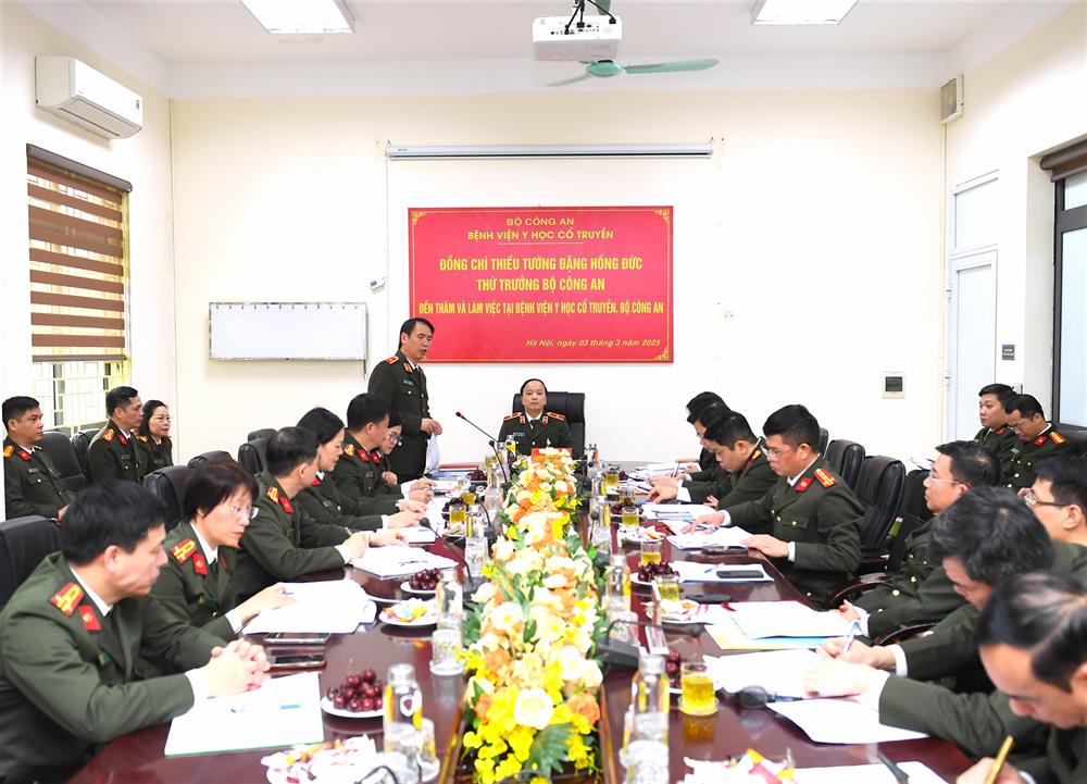 Ngày 03/3/2025, tại Hà Nội, Thiếu tướng Đặng Hồng Đức, Thứ trưởng Bộ Công an đã đến thăm và làm việc với Bệnh viện Y học cổ truyền Bộ Công an về các mặt công tác của đơn vị.